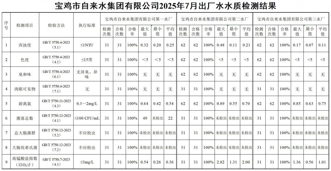 2025年7月水质公示