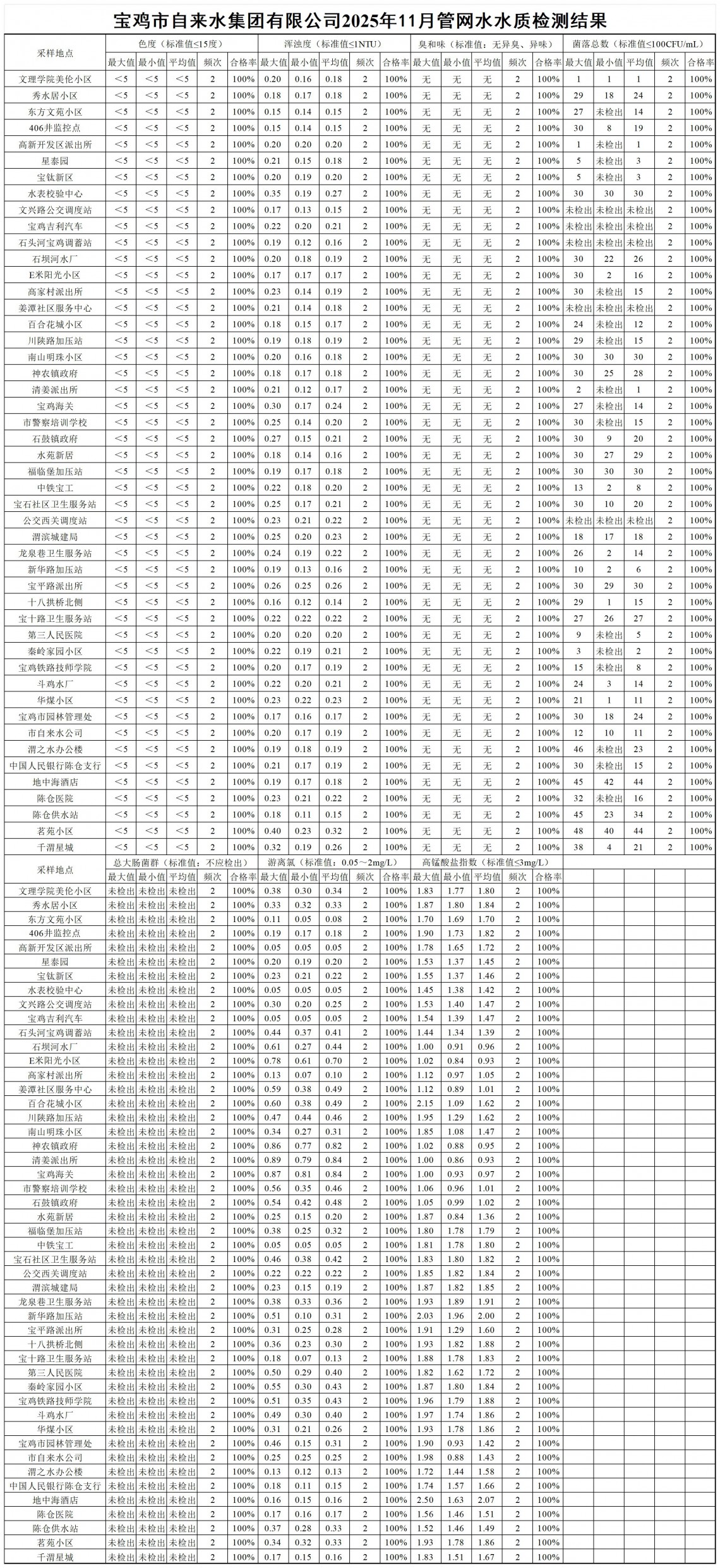 2025年11月水质公示