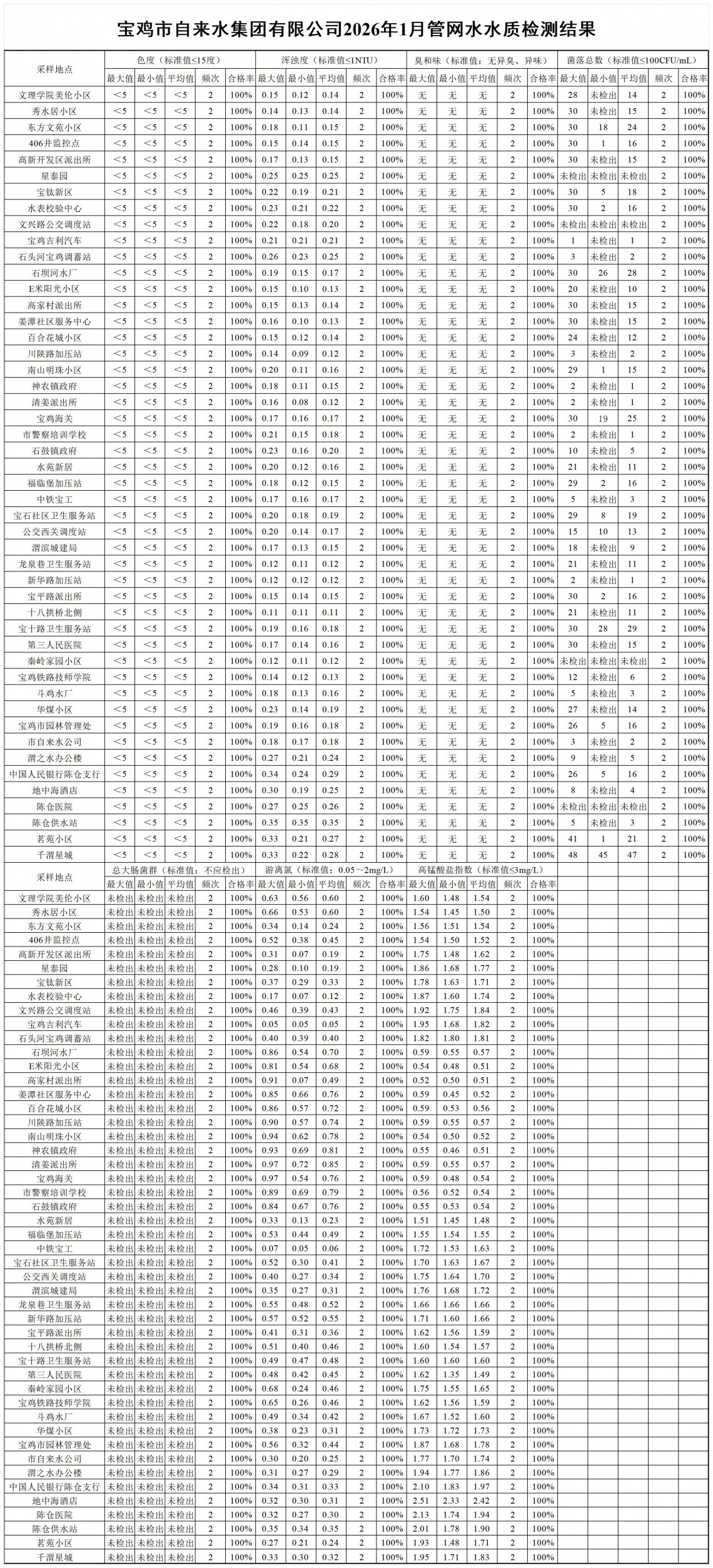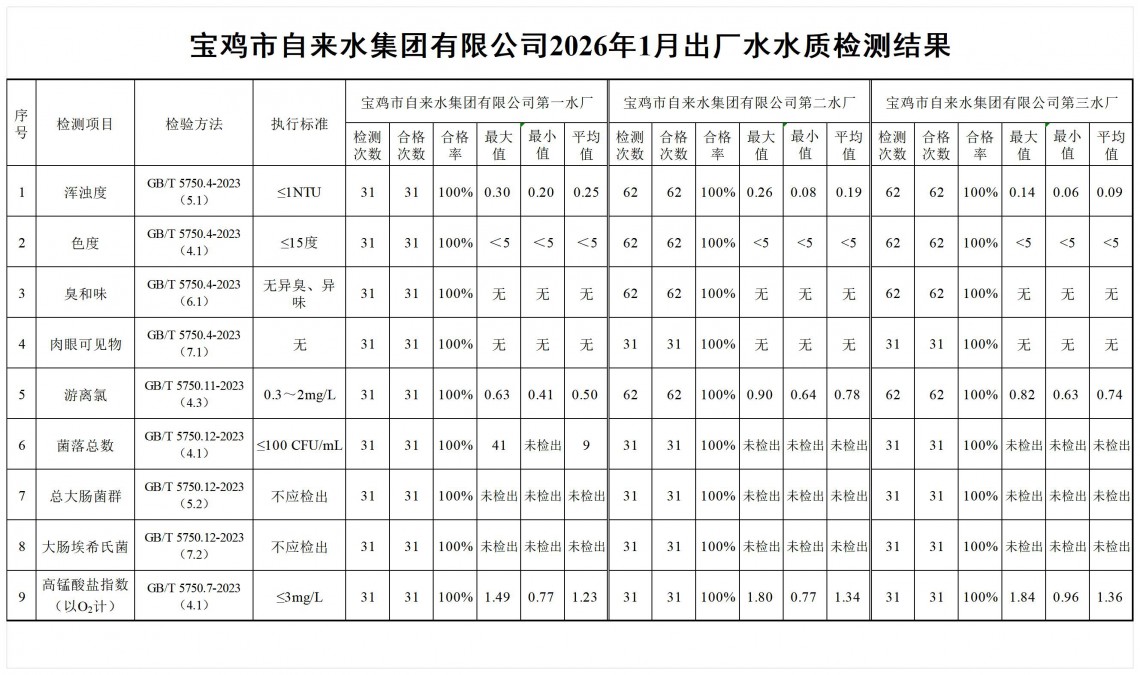 2026年1月水质公示