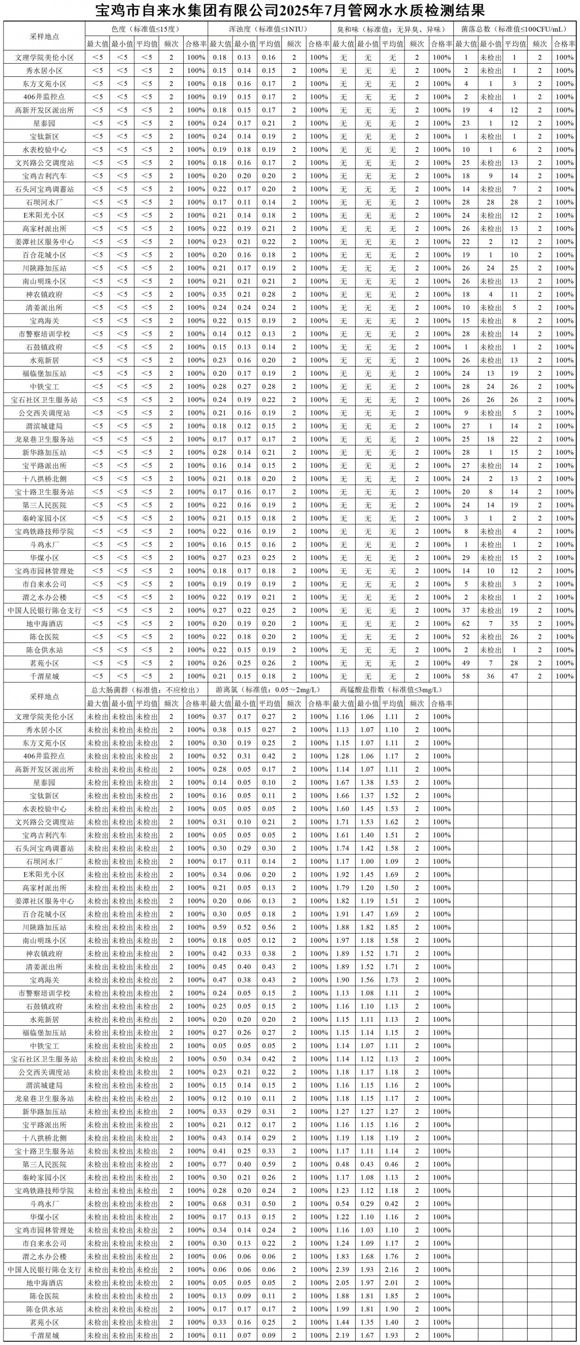 2025年7月水质公示