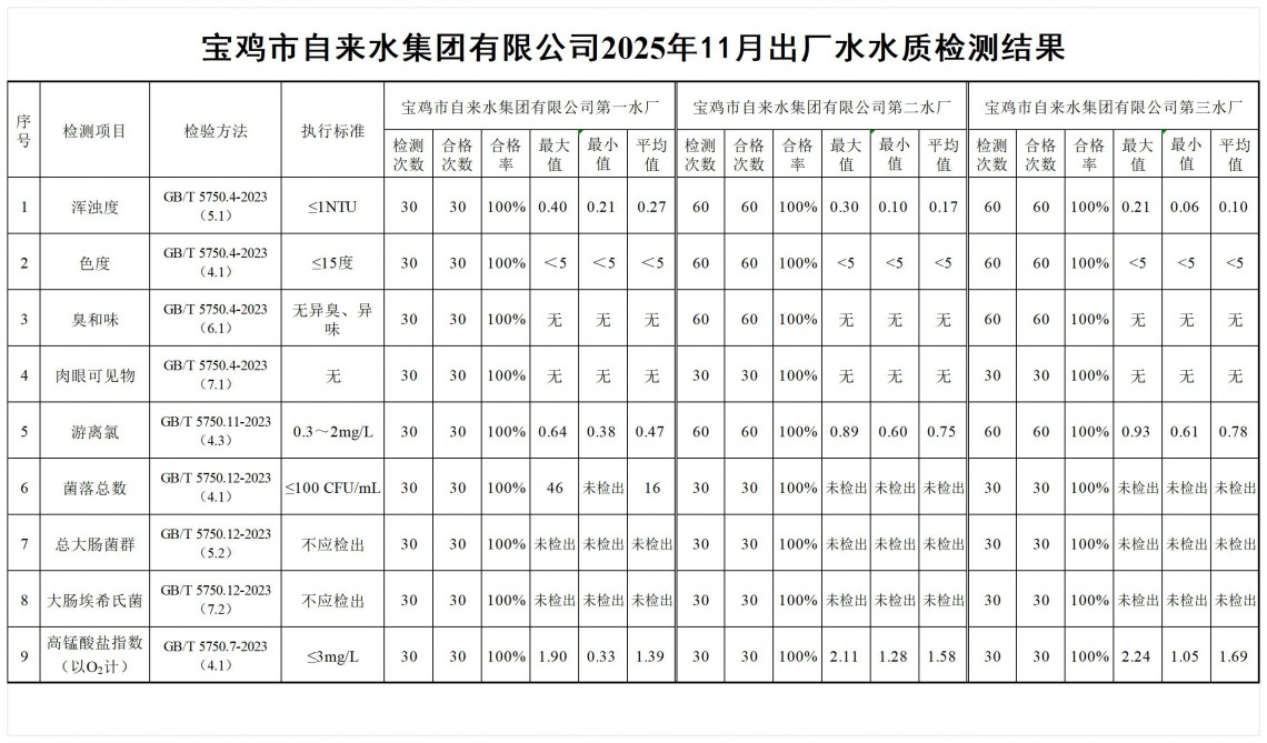 2025年11月水质公示